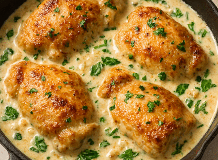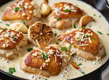 This creamy chicken recipe brings together tender chicken and a luscious garlic-infused sauce in a quick, satisfying skillet meal. Ingredients