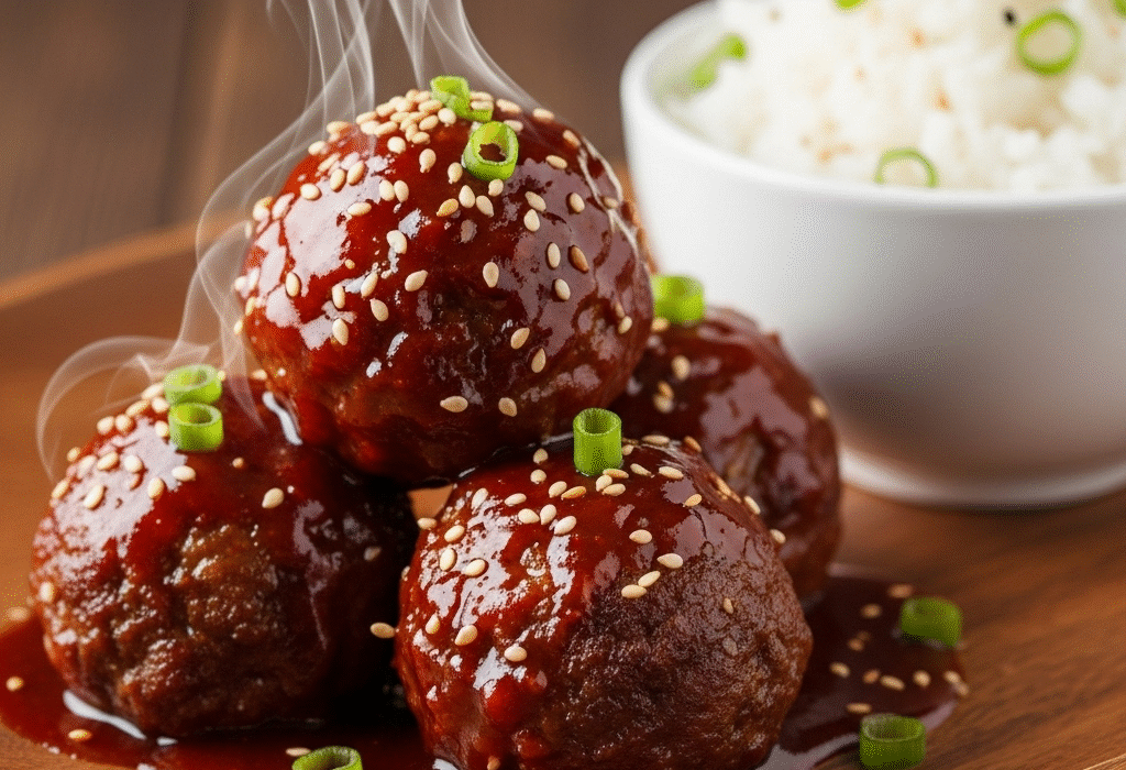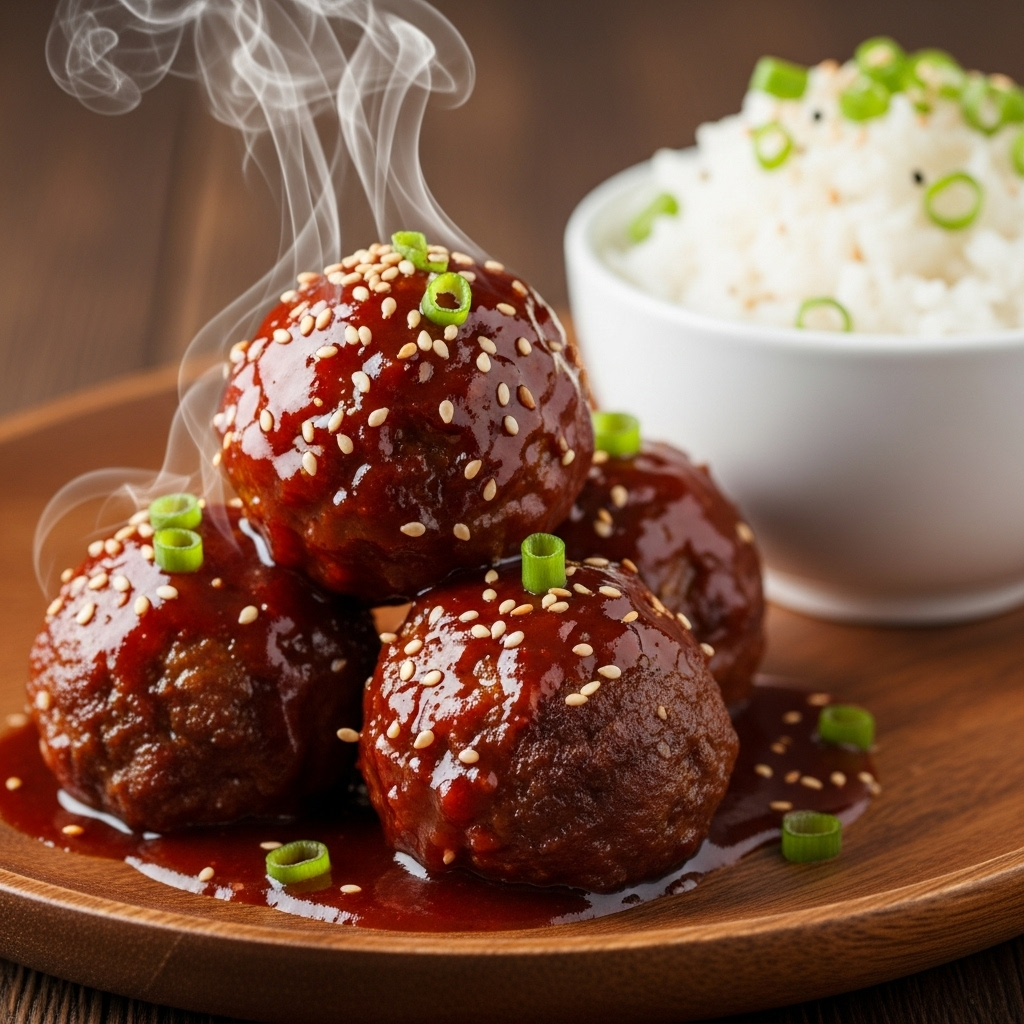 Juicy Korean BBQ Meatballs with Spicy Gochujang Glaze